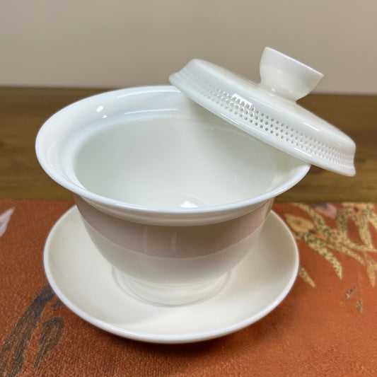 Beginner-Friendly White Porcelain Gaiwan with 360° Pouring, Inner Filter, Heatproof and Hovering Lid Design, 160ml